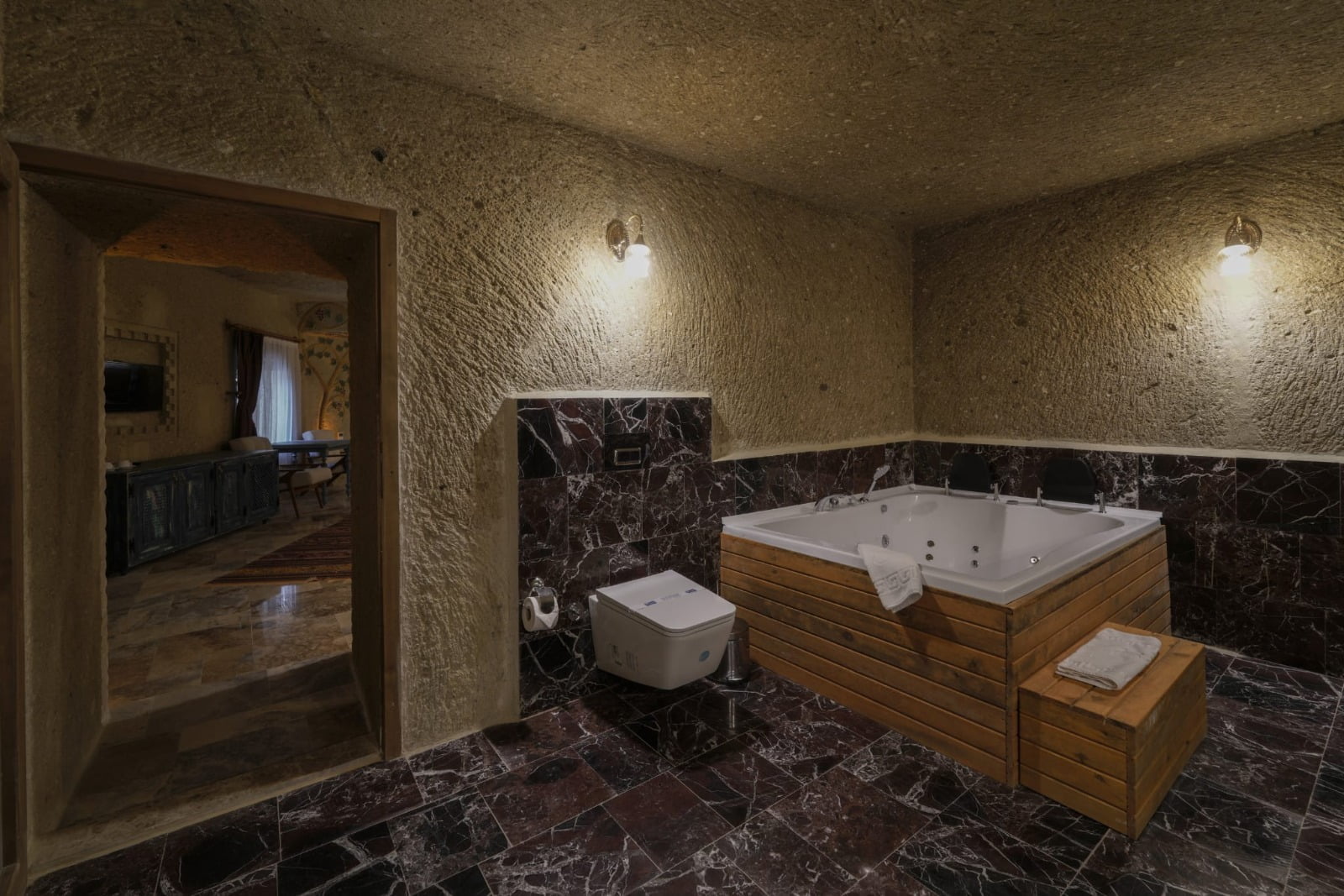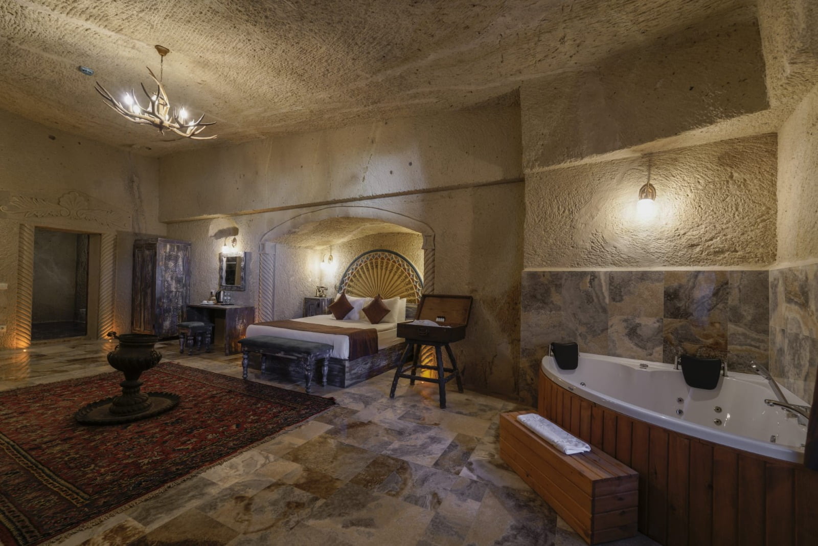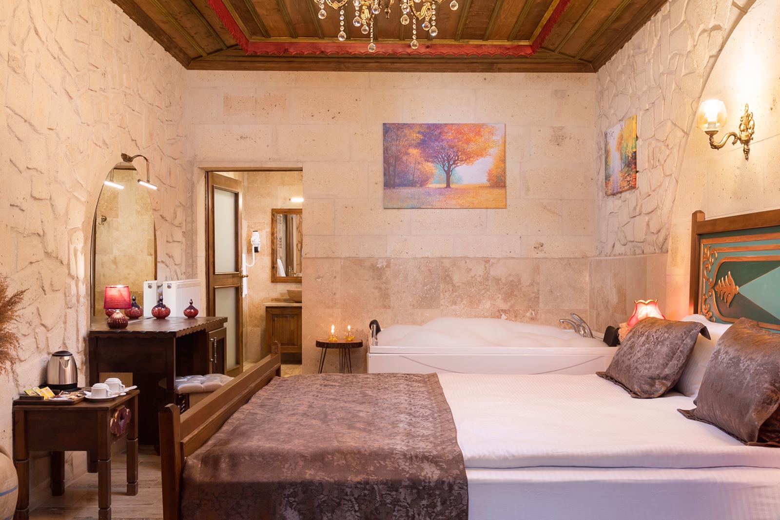 Jakuzili odalar, genellikle geniş ve ferah bir alana sahiptir. Odanın merkezinde yer alan jakuzi, şık tasarımı ve modern özellikleriyle dikkat çeker. Sıcak suyun rahatlatıcı etkisi ve masaj yapan jetler, bedensel ve zihinsel yorgunluğu hafifletir.